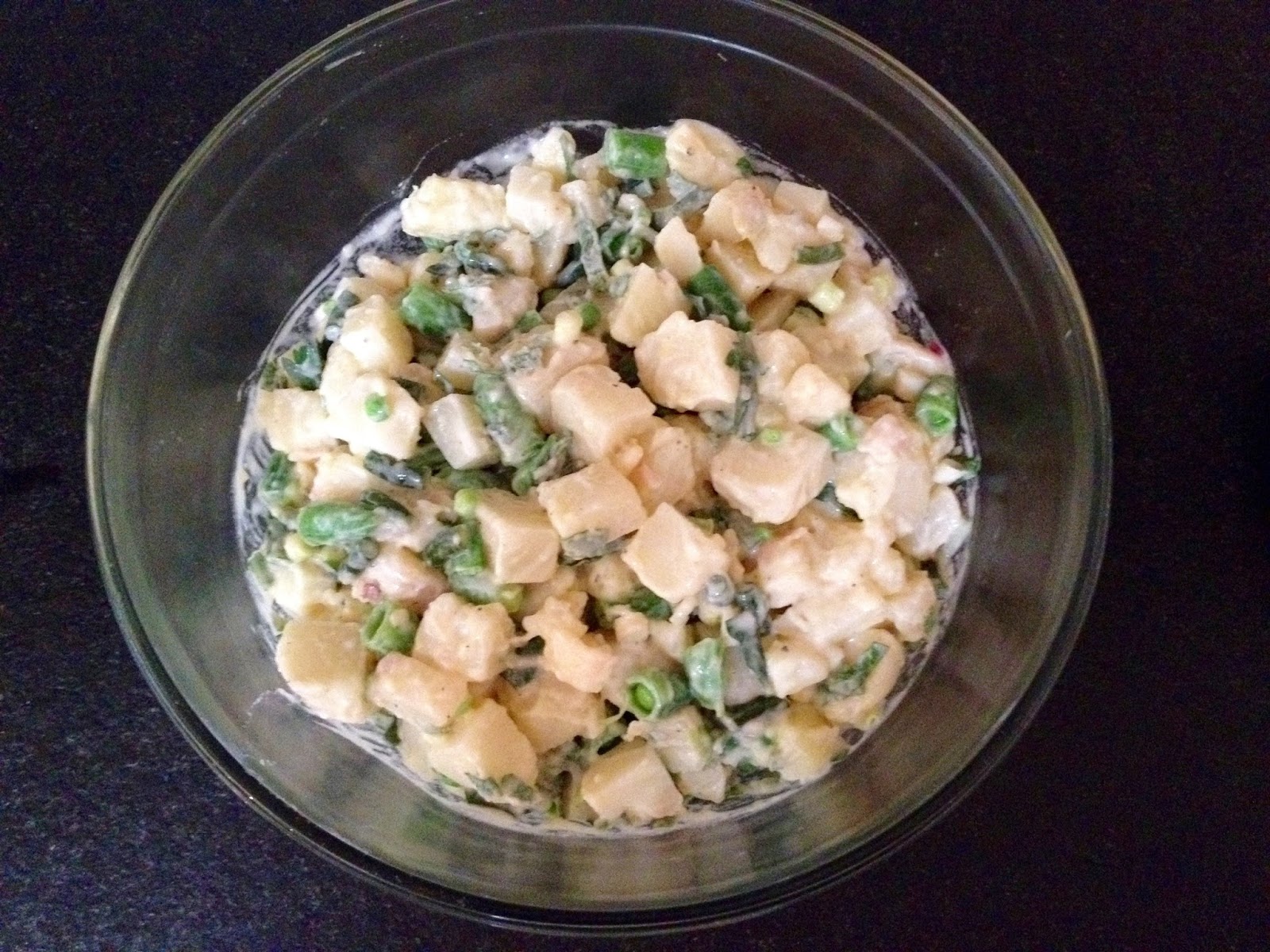 | Note: This was done with the original recipe where the potatoes cook before they are peeled. |