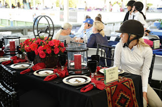 create fantasy table settings for the Grand Prix tents and some very bold-faced names.  Think billionaire former Mayors for one.  They even decorate the jumps for corporate clients.  And then they turn their imaginations to their own table under the big tent.