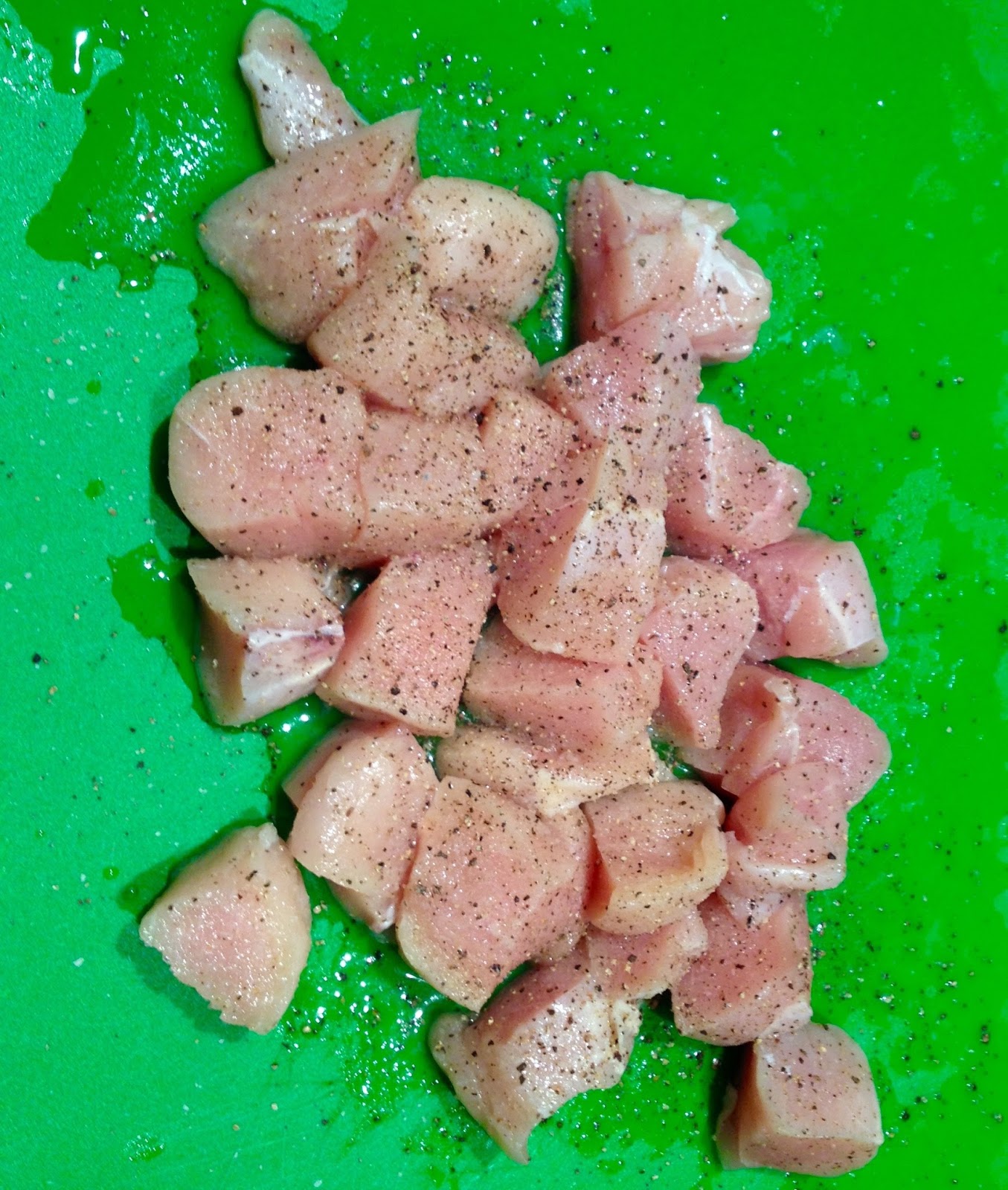 2 boneless, skinless breasts of chicken, cut into ¾ inch pieces.