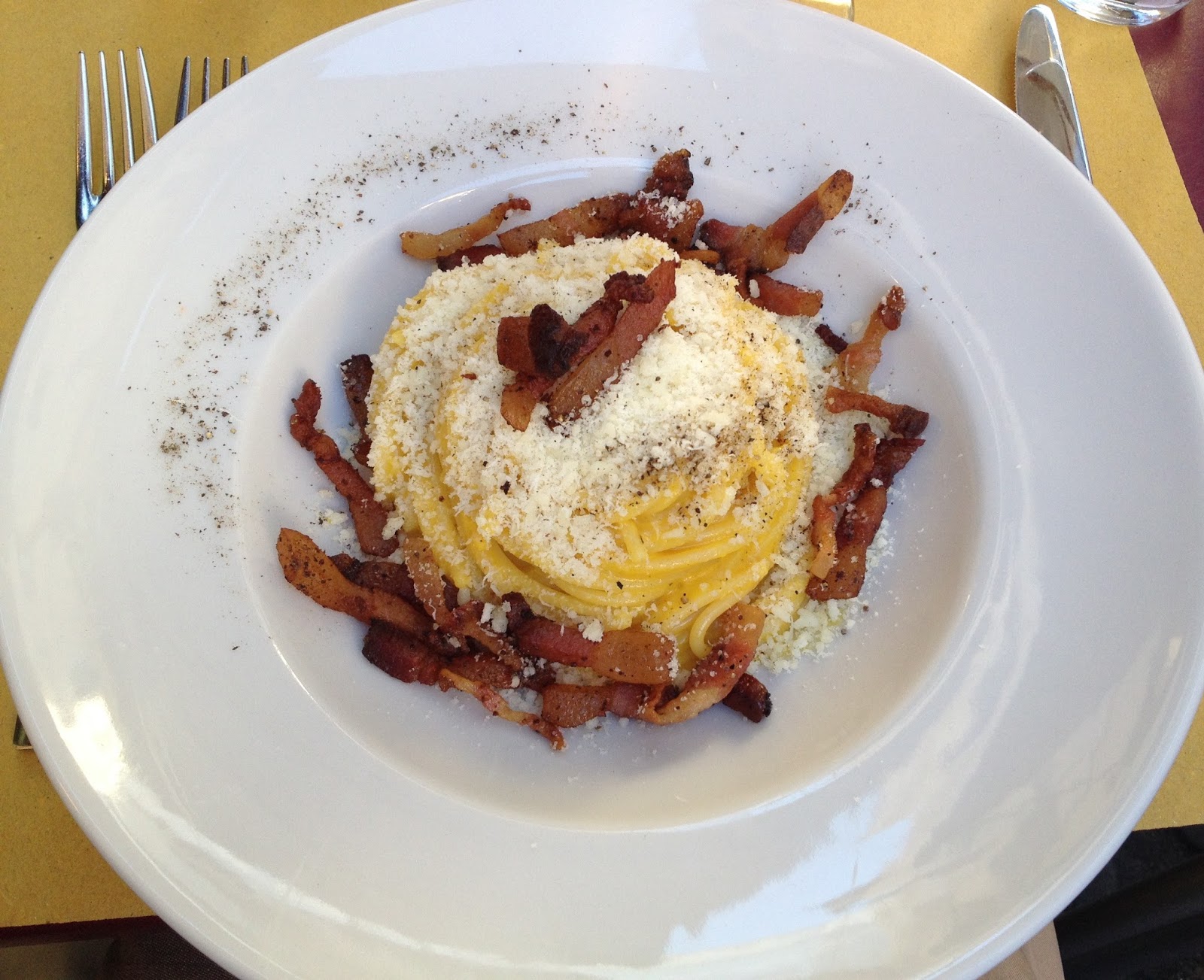 the Campo dei Fiori, the market where we went daily to pick out our lunch. After a wonderful reunion and my first really Roman Carbonara in 47 years, I went back to school. Was it changed? Oh my yes. The area around the school has undergone the kind of change New Yorkers know well. Campo dei Fiori is Soho now. The butchers and bakers and candlestick makers have been replaced by the Burberrys and Ted Bakers and high-end shoe makers.