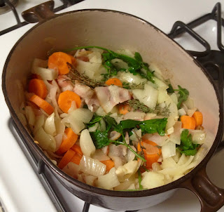 As promised earlier this month, this blog has not heard the last of Ruth Reichl’s latest book (Random House 2015).   Completely coincidentally, while Ruth wrote of yet another snowstorm marooning her and her husband in their upstate New York house, we here in the city had our first plunge in temperatures.   With not a snowflake in sight nor any on the horizon, this recipe called to me nonetheless.   First of all, what is more warming than stew?   And what tastes better than a stew left overnight where it develops even more flavor?  You take it out of the refrigerator then next day, peel away the layer of fat and continue slowly reheating the dish.  Andrew was away this past weekend and so I turned Sunday into a leisurely day of stew making so that I could turn Monday night, when the temperature took its nosedive, into stew night. What makes this particular stew so extraordinary?  And why isn’t it a recipe for Boeuf Bourguignon?  It sure comes darn close with its ingredient list almost identical however this is Ruth’s stew and it’s well worth putting on your winter cooking list.