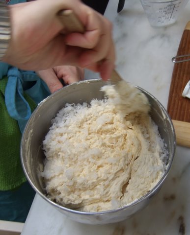 In the run-up to Easter, we’ve had snow, sun and cold temperatures earlier this week that feel more like winter than spring. It’s warmed up at last and here’s how we celebrated. And, after Andrew added jelly beans, they clearly make for an Easter filled with color.  We’re also celebrating what we consider to be quite an achievement.  Someone reading this will be the 1,500,000th reader of Chewing the Fat! That’s right 1.5 Million people have read Chewing the Fat. Thank you so much and I look forward to keep entertaining you and feeding you delicious things to eat.  So let’s celebrate with these coconut-lovers cupcakes. For those who observe Lent, it’s time for a little indulgence.  Andrew made this Ina Garten recipe for an Easter party last year and they were a huge hit.  But you must love coconut:  There’s coconut in the cake and coconut on top.  And I think you’ll agree, he’s really got the recipe down pat —they look just like their picture.   So without further ado, here’s the recipe: