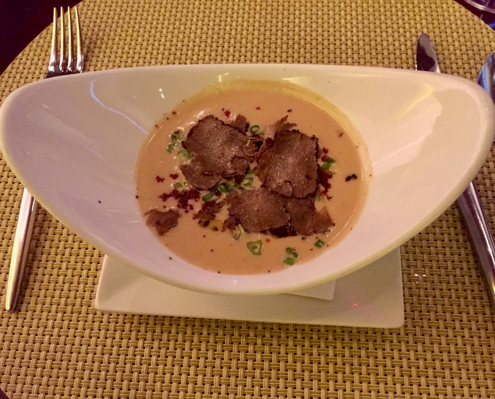 Arriving at the table with a generous topping of shaved truffles, this sumptuous offering gets its smoky, creamy flavor from the large amount of bacon in its preparation. There’s even something called “Bacon dust” involved here, which a server assured me is just made by two slices of bacon being pulverized in the food processor.  I can’t think of a better soup to eat as the cold sets in and the weather calls for soup.  Top this one off with some black truffle oil and chives and dip right in.  You’ll understand immediately why Marmalade is a must-stop on any trip to Puerto Rico. The recipe provided is for a giant quantity of soup which I am sure will freeze well.  But if you must, you can certainly halve the recipe.  Although, I am fairly sure you won’t the second time you make it.