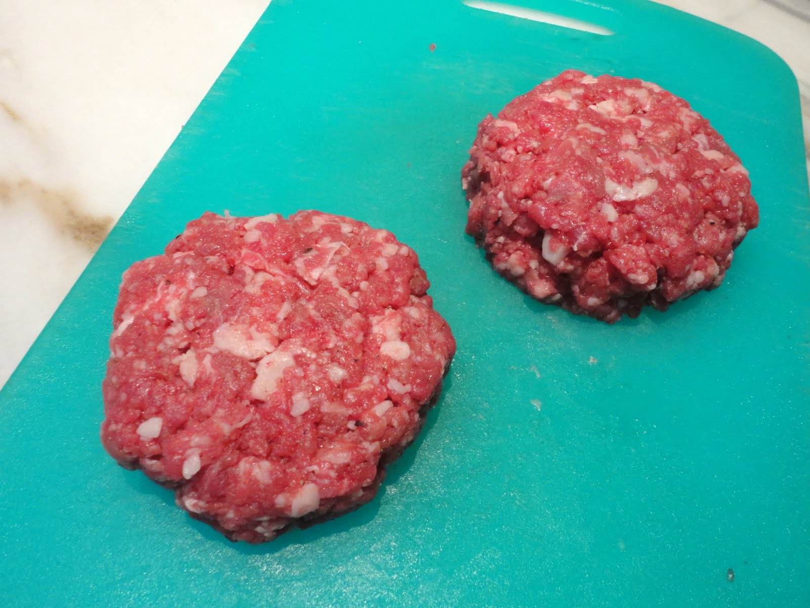 1. Divide meat mixture into 4 equal parts, then shape each into a large patty. Generously salt and pepper both sides of each patty.