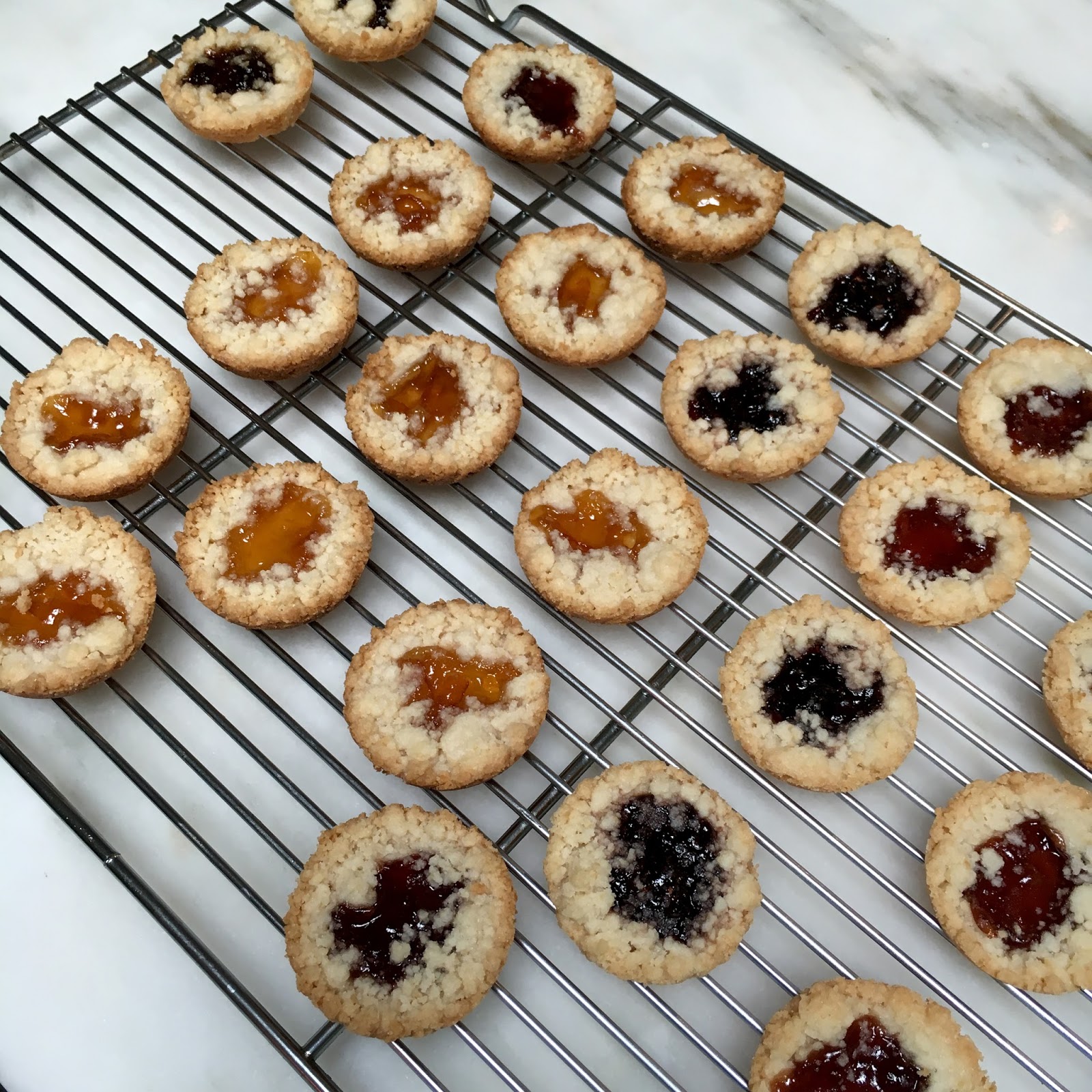 Any cookie this good requires a little effort but the result is so worthwhile, I bet you will bake these time and time again. There’s a cookie dough to make and a streusel to top it with. It also requires muffin tins and a two inch cookie cutter. But the good news is the dough and streusel can be made in advance and nowhere does Ms. Greenspan suggest making your own jam. Jammers also keep very well—for at least a couple of days. Here is the recipe.