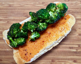 Or more properly, it’s what Assistant Food Editor Amelia Rampe called her invention. That was likely preferable to her later reference when she called it a “Broccoli Sandwich”. That was, unfortunately, what I called the thing when I told Andrew that I was making one for Sunday lunch. He was less than excited but vowed to keep an open mind. You can guess the rest. He really liked it in all its cheesy, roasted broccoli goodness. The accompanying peppadew peppers, hot and sweet, add another layer of surprise. And since we like things spicy around our house, I used a simple Chipotle Pepper-spiked Mayonnaise for even more taste. The result truly was a Vegetarian Sandwich we loved. Is it a hoagie? A Wedge? A Hero? Or a Grinder? And what, you may ask, is the difference?