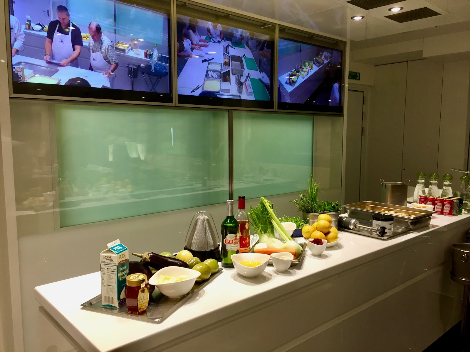 Cruise ships have jumped on the culinary bandwagon in a major way. There’s virtually no major cruise line that doesn’t offer cooking demonstrations, wine and chocolate tastings, even celebrity chef appearances. But for those of us who want to get our hands dirty, the selection becomes far more limited. The “Big Three” — Carnival, Norwegian, and Royal Caribbean — confine their culinary arts offerings to shore excursions only. Then there are the ships where you can look, but not touch, at demonstration kitchens where cooking “classes” consist solely of watching the pros and, with any luck, sampling their dishes.
