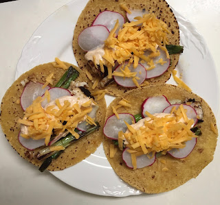 Recipe for Swordfish Tacos with Radishes, Grilled Green onions and Chipotle Sour Cream adapted from the New York Times