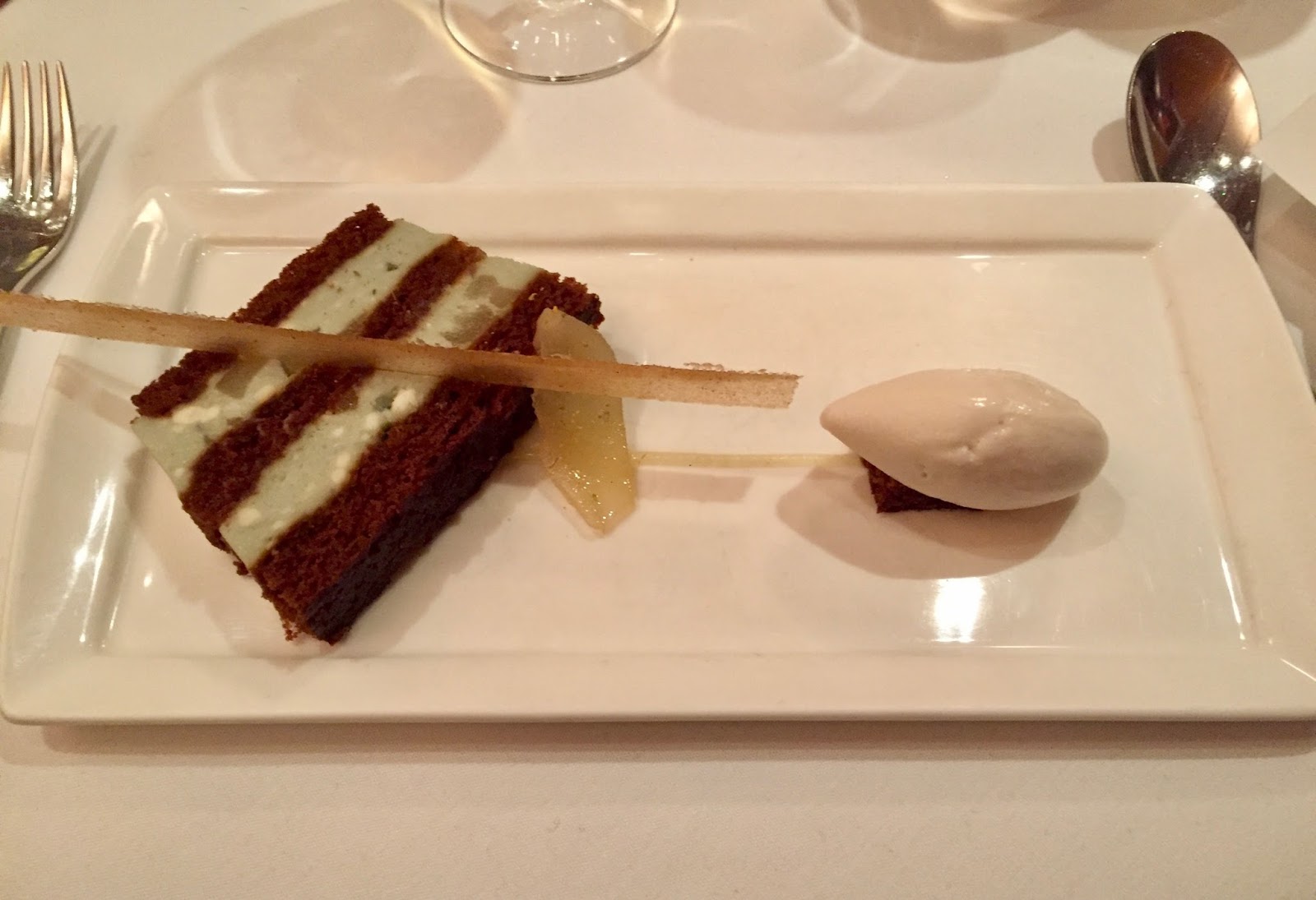 The pièce de rèsistance of the lunch may very well have been the dessert created by chef Bernard Liberatore on Manhattan’s CORE Club — a Roquefort terrine, combining a cream of the emblematic blue cheese with a remarkable flavor of spice cake and pear and a quenelle of walnut ice cream. The pear and Roquefort flavors were a great match. (The chef was kind enough to give The Daily Meal the recipe.) The perfect accompaniment to the final course of a memorable meal was a glass of Boulard Grand Solage Calvados VSOP.