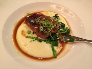 Chef Alexander Burger of the host restaurant, Bar Boulud, was responsible for two courses. The first, passed canapés, included a glorious black truffle goat cheese from artisanal California cheesemaker Laura Chenel, a petite breakfast goat cheese from Marin French Cheese of California, and finally a Gabietou from Mon Fromagerie in Roanne. These rich cheeses were accompanied by Champagne Brimoncourt Régence Brut, Château de Berne’s Côte de Provence rosé, and a red Bordeaux from Légende, the venerable Château Lafite’s entry into more moderately priced wines.