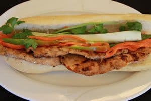 The bread “Banh Mi” came with the arrival of the French and the absorption of Vietnam into French Indochine. By 1860, the small baguette had become a feature of Vietnamese life. Because the wheat flour to make them had to be imported, they were first considered a luxury. Gradually, Vietnamese bakers began mixing in local, and therefore inexpensive, rice flour. It became a food ordinary Vietnamese could afford. At first, baguettes were mainly eaten for breakfast with butter and sugar. The first savory banh mis hewed to French palates: Jambon-beurre, the classic French Ham and Butter combination was moistened with mayonnaise or spread with liver pate. The varieties of banh mis really took off after 1954 when Vietnam was partitioned into North and South. A million migrants left the north for the south and Saigon, South Vietnam’s capital, became a hotbed of banh mi flavors.