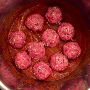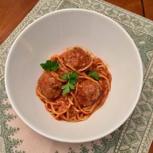 I have had a love/hate relationship with Canada’s gift to the kitchen. I’ve made some wonderful chili and soups but I have yet to completely understand Instant Pot’s allure. My first positive reaction to it was to think it’s really not a bad thing to give as dormitory gift. It sure beats the metal coil we used in college to make tea and instant coffee and nothing else. You can sauté in it, you can use it as a slow cooker and you can make budget cuts of meat tender in no time in an Instant Pot. You can also make Spaghetti and Meatballs. I discovered these several weeks ago. I was so leery as to how they’d turn out that I didn’t even bother to photograph the dish–something that’s pretty well un-heard of in our house.