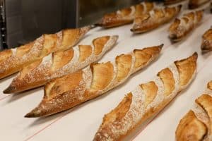 the crunch of garlic-y, cheese-y, buttery perfection. And the better the bread, the better you’ll like it. I’d recently seen a list of New York’s best baguettes. Frenchly.com, a website “for Francophiles in the US and abroad, covering news, arts, culture, style, and all things French.” Appropriate judges for a Best Baguette Contest. They managed to find 13 bakeries and, in a well-attended taste test declared the winner. For the second time, Maison Kayser picked up the Grand Prix and the Reader’s Prize for Best Baguette in New York, a city where that kind of thing never happens. No one ever wins anything twice. And what’s probably just as remarkable is that Eric Kayser only opened the first Maison Kayser in Paris, the mothership for baguettes, in 2006. In New York, where he opened the first Maison Kayser in 2012, he now has 17 outlets. And one of them is just 8 blocks north of us at Broadway and 76th St. The secret to the best baguette in New York—bread made on site every day using a technique Kayser himself developed. I am afraid every other baguette on earth will never live up to this one. Here is the recipe: