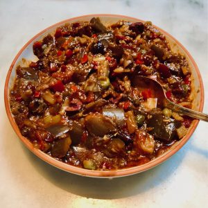 A Sicilian delicacy, this marvelous Eggplant dish is a perfect appetizer or spread for a Cheeseboard. It will keep in the fridge for weeks.
