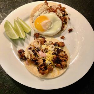 Chorizo Breakfast Tacos with Potato Hash and Fried Eggs