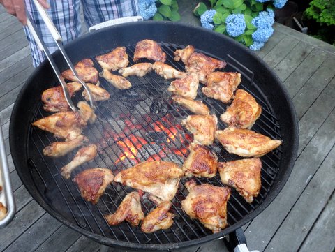 Much to my astonishment, I found it in the Times archive. There it contained instructions for both the oven-baked method which I use and the option to use the sauce to baste the chicken while cooking it directly on the grill.  There was also the warning that grill cooking times varied widely according to the heat of the grill.   It’s precisely for that reason that I go the baked-in-the-oven direction.   I have strong memories of a dear friend (and I am not naming names) who used to grill chicken to what would be called ‘medium rare’ if one were being kind.  Said chicken would then have to be put back on the grill for another hour.  This led most of his guests to be in a state of considerable inebriation by the time the chicken was finally served.