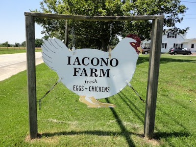 However, the awful truth is you can get away with calling chicken ‘free range’ if a door is left on the chicken coop.  Make that ‘chicken factories’ where hundreds and hundreds of birds scratch the floors for food.  Not so at Iacono’s.  Once the chicks arrive from hatcheries in Pennsylvania, they are installed in a heated pen till they are old enough to run free range. Their diet is completely free of chemicals, antibiotics, and the hormones that produce the far bigger birds of the chicken factories.  Instead, they feed on corn and soybeans and freely run outside where they can access grass.  Because in addition to chickens, Iacono Farm sells eggs with beautiful Tropicana orange yolks, the hallmark of a true free-range chicken.  They are simply magnificent.