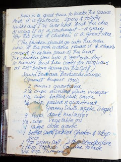 I wanted to recreate a recipe that I first made 21 years ago.   Here’s a photo of the recipe page from my cookbook. Over the years, I’ve hauled it out for many a summer meal.  The thing that makes this dish unique is two-fold.  The chicken parts sit in a cooking sauce overnight and then are baked in the same sauce, low and slow.  They are really cooked when they come out of their long haul in the oven.  But without a few minutes on the grill, I’m not sure they would qualify as barbecued chicken.  And even with the very unique barbecue sauce that is served with them.