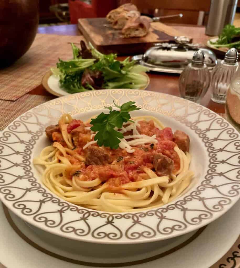 This hearty stew brings together tender pork shoulder, creamy Great Northern beans, and a fragrant mix of leeks, onions, and celery. Simmered in chicken stock with thyme, garlic, and a touch of cinnamon, it develops a deep, comforting flavor. Diced tomatoes add a hint of brightness, while fresh parsley finishes it off with a burst of freshness. Perfect with crusty bread, it’s rustic, rich, and utterly satisfying. You can make this in a Dutch Oven…in about 4 hours. But the real hero here is the Instant Pot.