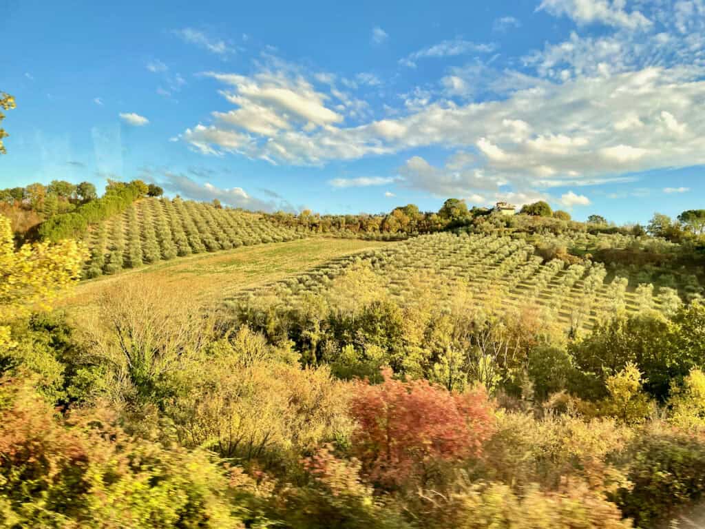 Autumn landscape in Tuscany with rolling hills and hectares of vineyards—the region where traditional Ribollita originated.”