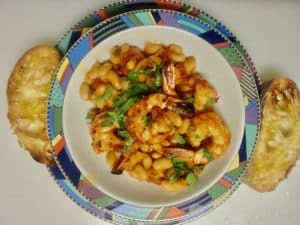 My experience with Spanish cuisine is limited to making an occasional Paella and even there, without a true Paella pan, I am not sure how authentic my version is. But I’ve wanted to delve a little deeper ever since I read “Ferran ” (Gotham Books 2011) Colman Andrew’s biography of Ferran Adrià y Acosta who is, arguably, the best chef in the world. And who wouldn’t be intrigued by a subhead that read “The Inside Story of El Bulli and the Man who Re-invented Food”. From his out-of-the-way El Bulli restaurant in Roses on the Costa Brava, the chef has drawn gastronomes from every corner of the world. Now shuttered while he decides what his next step will be, the chef’s most famous contributions to cuisine will never be the province of the home cook. Adria is most associated with “molecular gastronomy”, which is that particular style of cooking obsessed with its science and how food is chemically changed during the cooking process. Despite his reputation for being one of its foremost practitioners, the Chef himself doesn’t consider his cooking to fit in that category. Instead, he is quoted as saying that his goal is “to provide unexpected contrasts of flavor, temperature, and texture. Nothing is what it seems. The idea is to provoke, surprise and delight the diner.” I won’t, for one minute, claim that this incredibly simple Garlic Shrimp with White Beans comes anywhere near the complexity of a Ferran dish. But I think you will agree that this thirty-minute entrée will “provoke, surprise and delight” you.