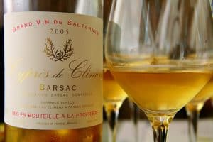 The Sauternes appellation is made up of only five small villages in Graves, 25 miles southwest of the city of Bordeaux. Its wines are made from grapes that have been affected by a fungus called Botrytis cinerea, also known as “noble rot.” This causes the grapes to become partially raisined, resulting in a unique concentrated flavor. Sauternes is made from sauvignon blanc, sémillon, muscadelle, and occasionally sauvignon gris grapes — usually a blend of two or more of them. Climens, which is in the Barsac region within Sauternes (it has long been known as the “Lord of Barsac”) is unique in that it uses only sémillion.