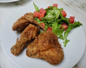 Northern Fried Chicken with a Watermelon and Arugula Salad