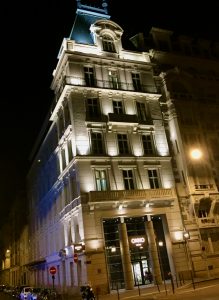At the time I wrote in Trip Advisor: The Okko is located in the city’s best residential area right on the banks of the Rhone. It’s perfectly positioned next to the Pont Lafayette to put Lyon’s premier neighborhoods within easy walking distance. But the real attraction here is the remarkable staff who simply cannot do enough for you. Or is it the superb public spaces–a comfortable lounge, wonderful breakfast area where you’ll find a great start to your day which turns into a perfect place for an evening aperitif. Be prepared for a superbly designed if small room; They lack for nothing except a place to stow your stuff. And your bathroom will be very much front and center. The heavenly shower more than makes up for that. Room tip: The rooms numbered 1 through 3 face the river. They cost a little more but you cannot beat the view morning or night.
