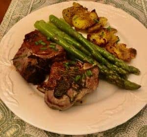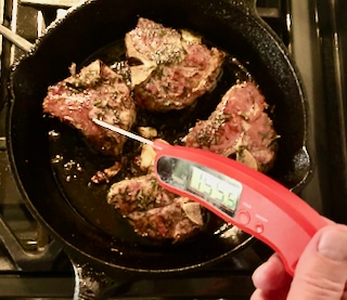 Delicious! We had fresh rosemary from our shrub, but no thyme. We roasted the chops for only 4 minutes and achieved the slightly rare side of medium rare. Perfect.